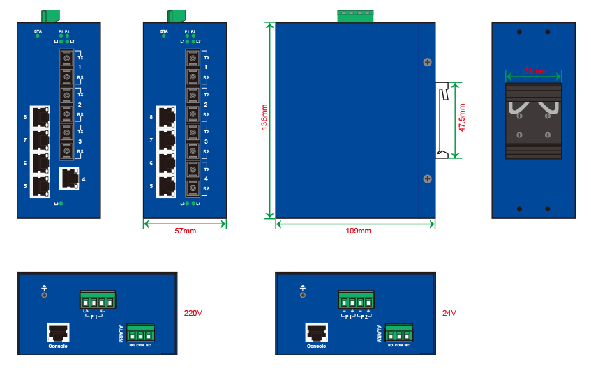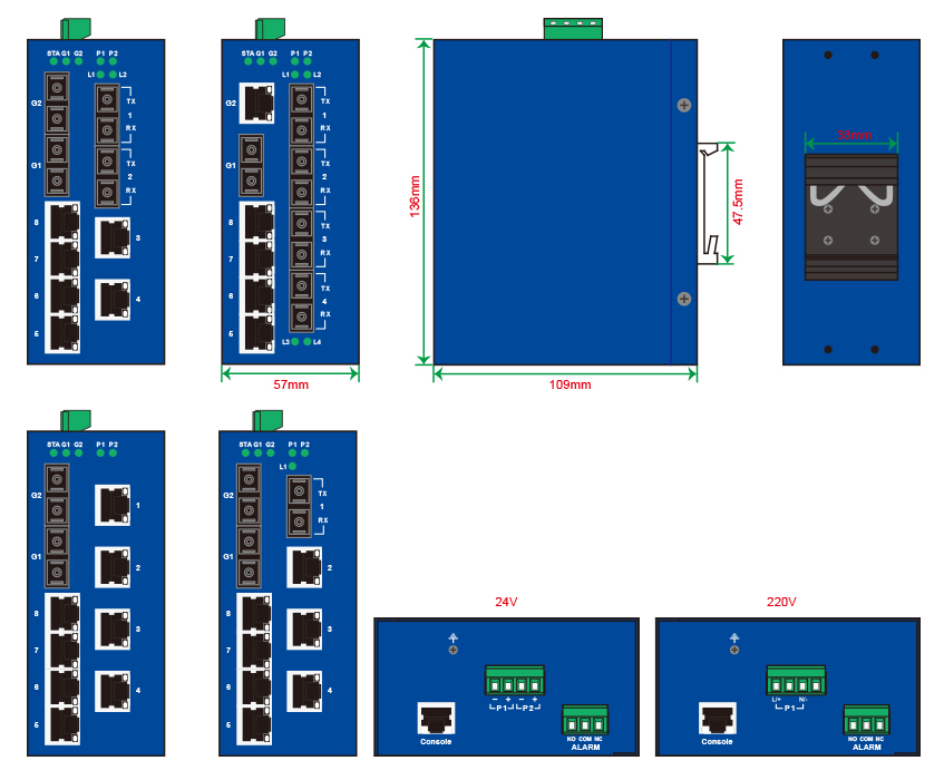 | 百兆光口 | 最多8個百兆光,SC/ST/FC可選 |