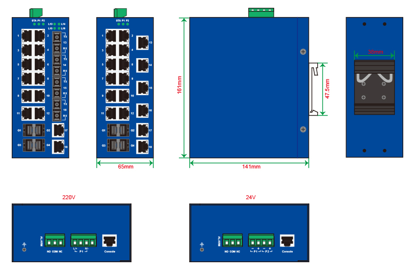 | 百兆光口 | 最多4個(gè)百兆光,SC/ST/FC可選 |
