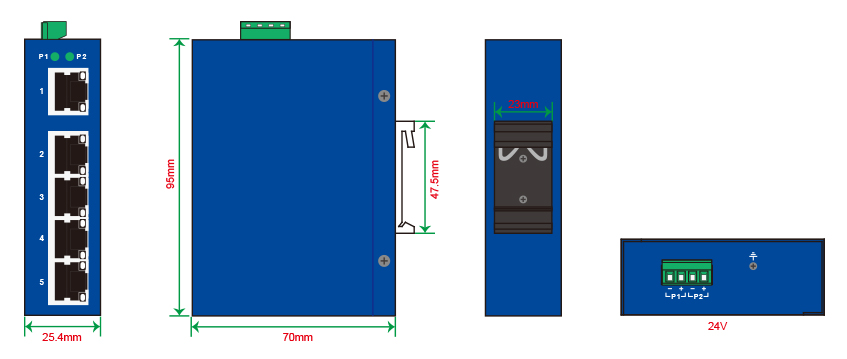 MX5E- 5T是一款緊湊型百兆非網(wǎng)管工業(yè)以太網(wǎng)交換機(jī),支持5個百兆電口。支持IEEE802.3/802.3u/802.3x,10/100M,全/半雙工,MDI/MDI-X自適應(yīng)RJ45端口。導(dǎo)軌安裝,24V電壓輸入,并提供過載和反接保護(hù)。可選寬溫型號(-40 ~ +75℃),強(qiáng)抗電磁干擾能力,完全滿足苛刻的工業(yè)應(yīng)用環(huán)境,為工業(yè)現(xiàn)場提供經(jīng)濟(jì)可靠的網(wǎng)絡(luò)接入。