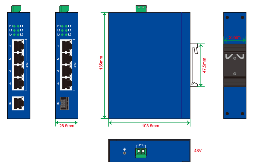 MX5G系列全千非網(wǎng)管型工業(yè)以太網(wǎng)交換機(jī),支持5個(gè)千兆口(最多支持2個(gè)光口)。導(dǎo)軌安裝,24V/220V電壓可選,寬電壓范圍輸入,并提供過載和反接保護(hù)。寬溫設(shè)計(jì),強(qiáng)抗電磁干擾能力,完全滿足苛刻的工業(yè)應(yīng)用環(huán)境,是千兆接入的最佳經(jīng)濟(jì)性選擇。
