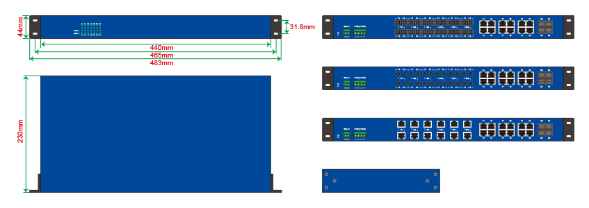 MX28C系列千兆非網管型機架式工業級以太網交換機,最多支持24個百兆口(最多支持24個光口),并可配置4個千兆SFP模塊。端口配置靈活,多種電源輸入方式可選,寬電壓范圍輸入,并提供過載和反接保護。工業四級抗電磁干擾能力,能夠滿足復雜的工業現場需求。